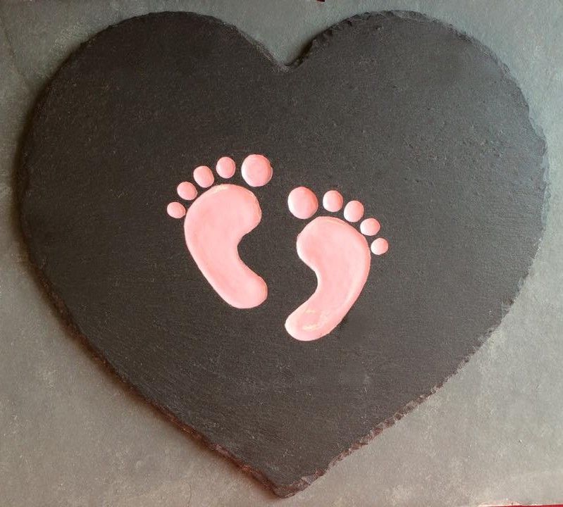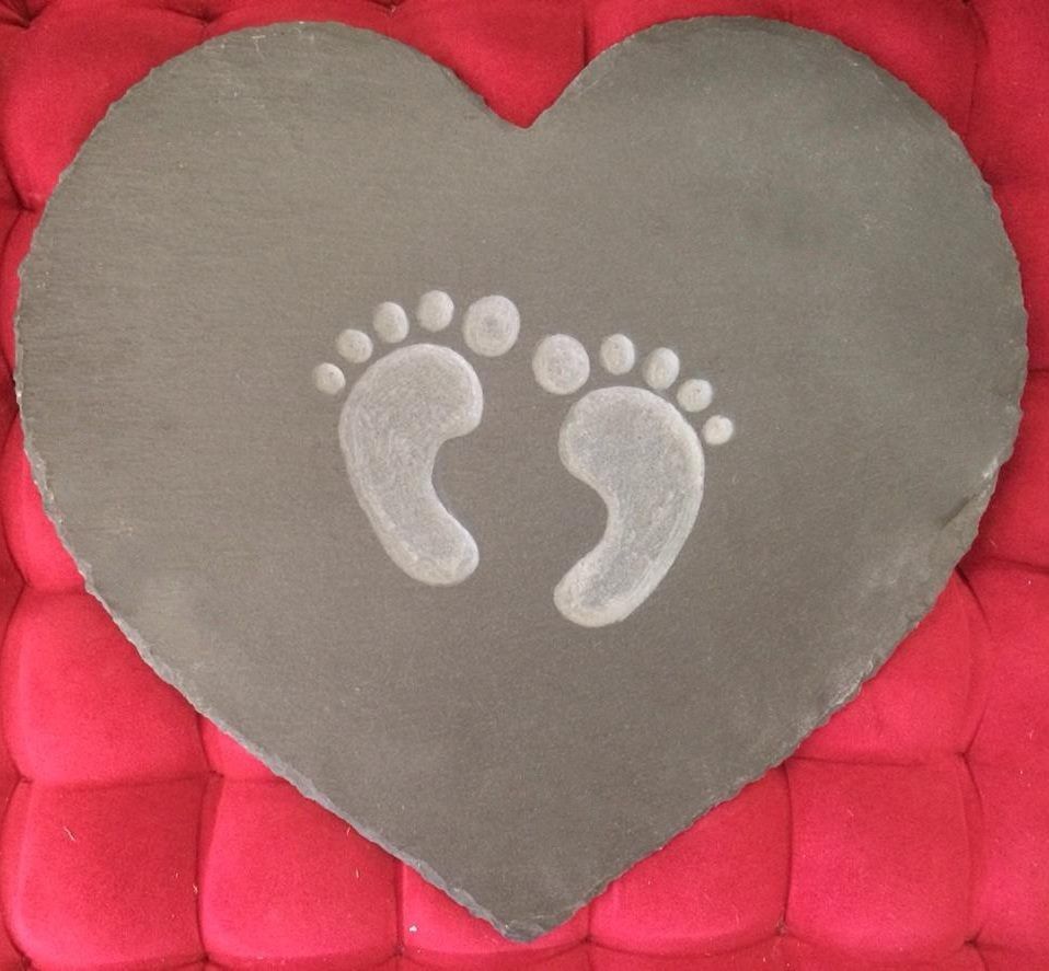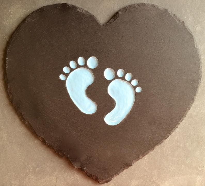 My most popular Christening design is this slate heart design with footprints, blue, pink or left unpainted.
