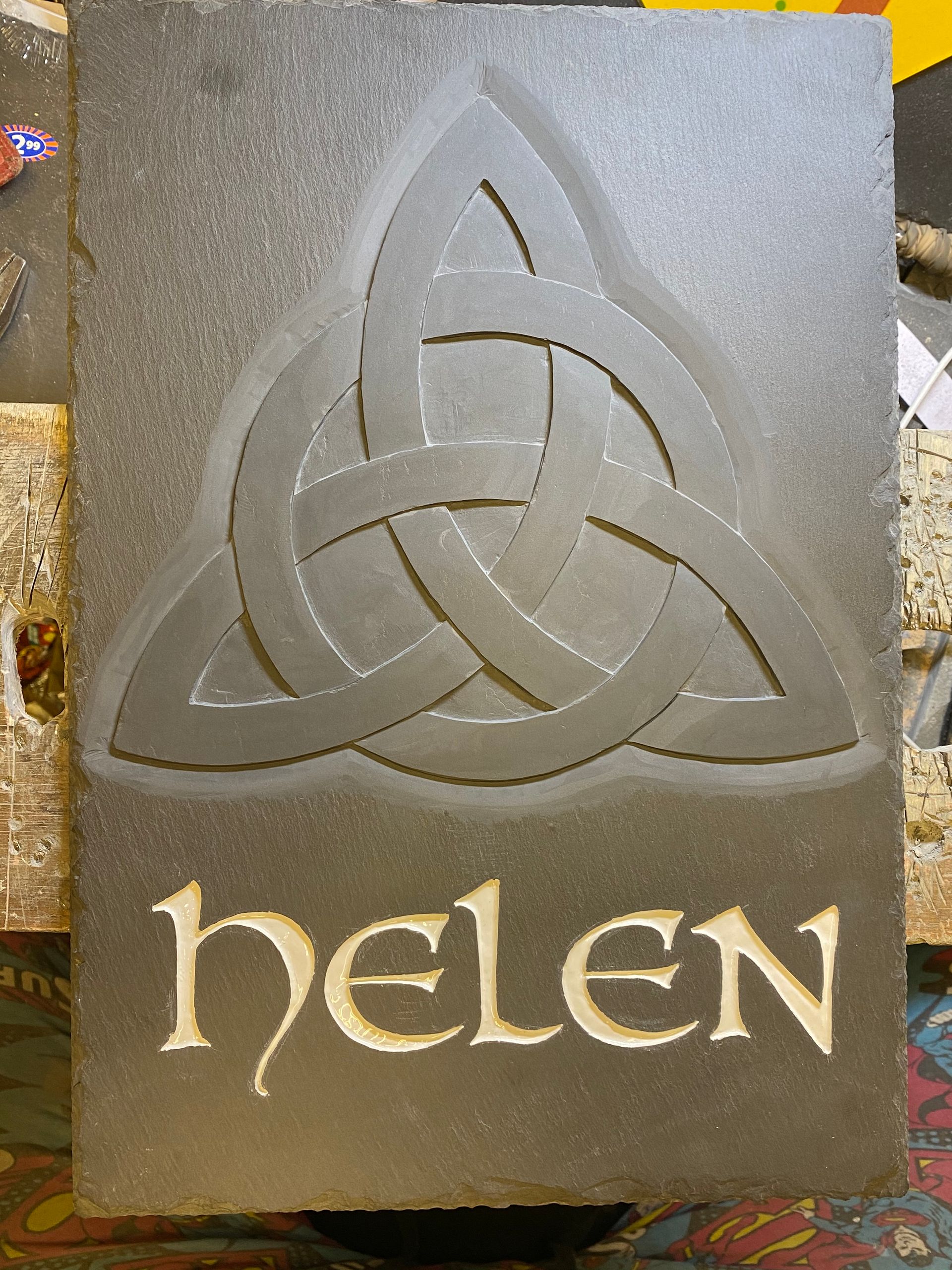 Slate was provided by the customer which had been used before, I cleaned it up and we 'recycled it'