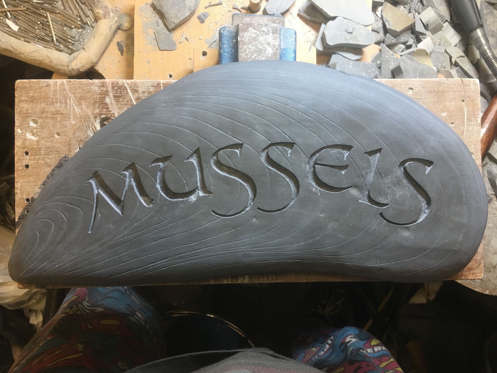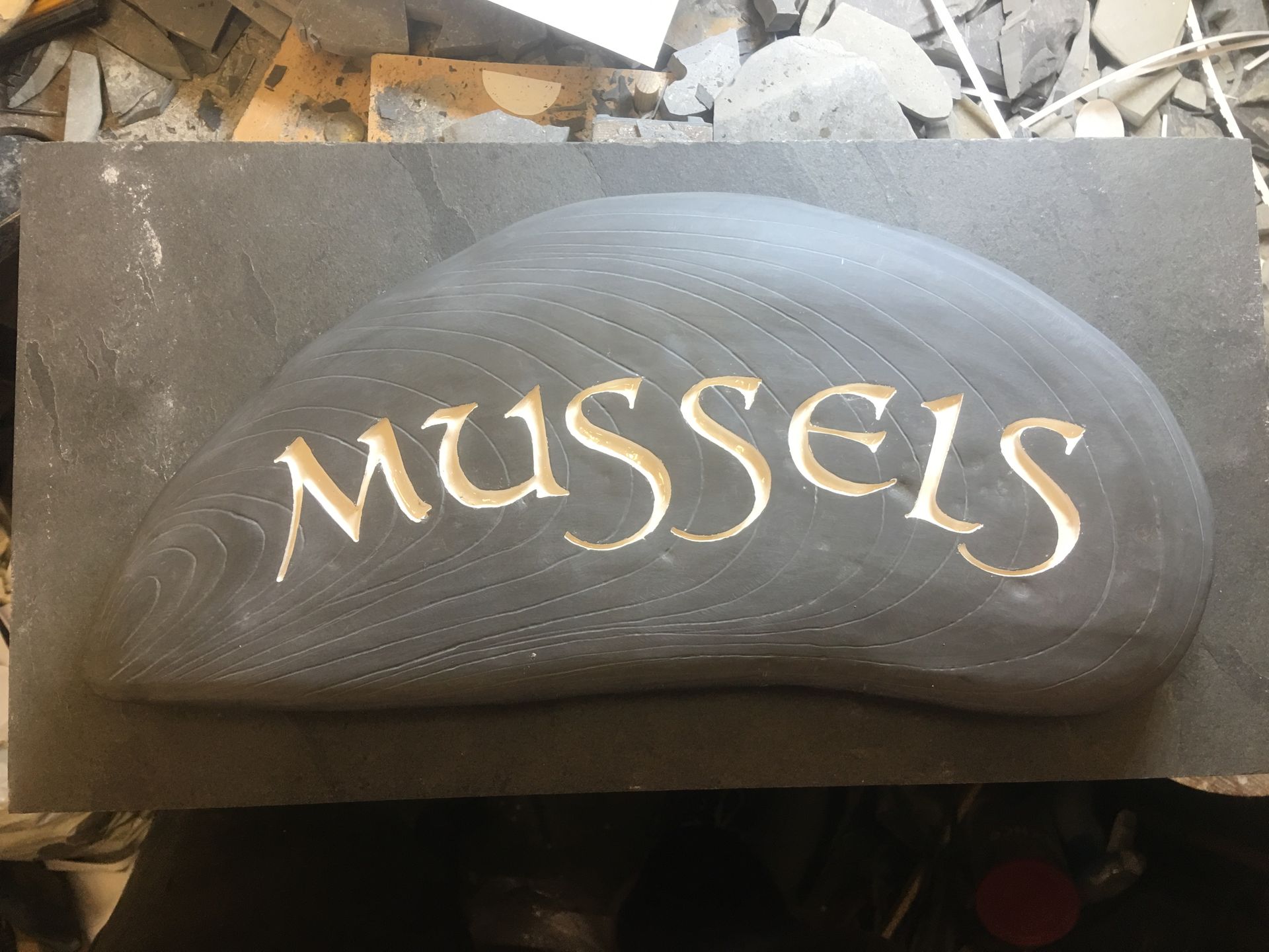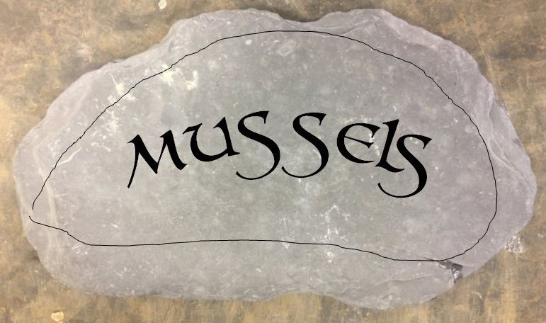 So I found 2 large beach washed Devonian Mudstones and cut them to shape, added some detail and engraved the letters in and painted!