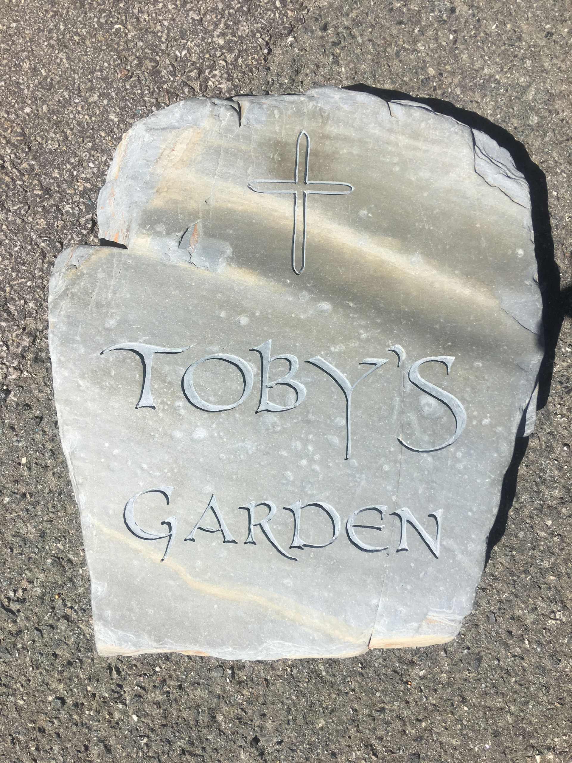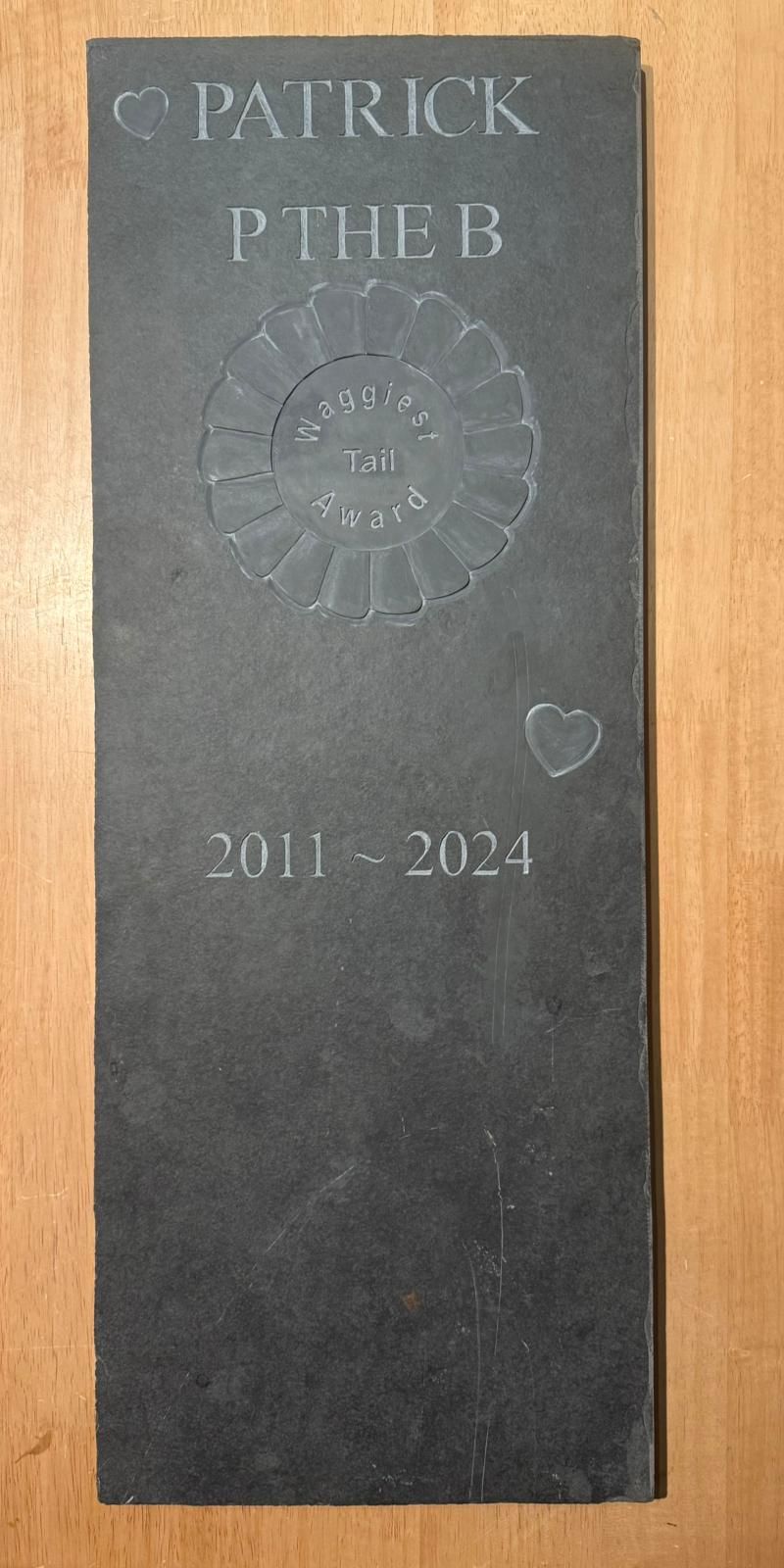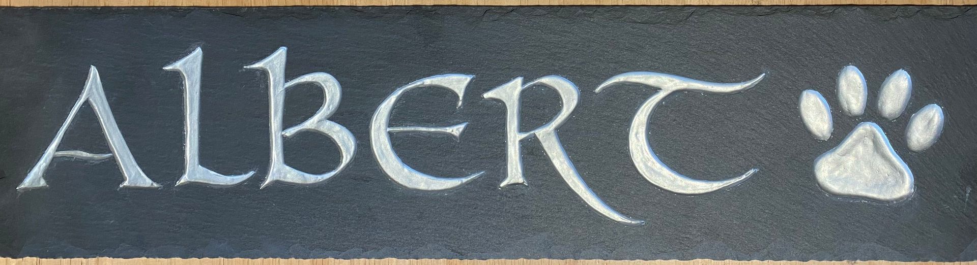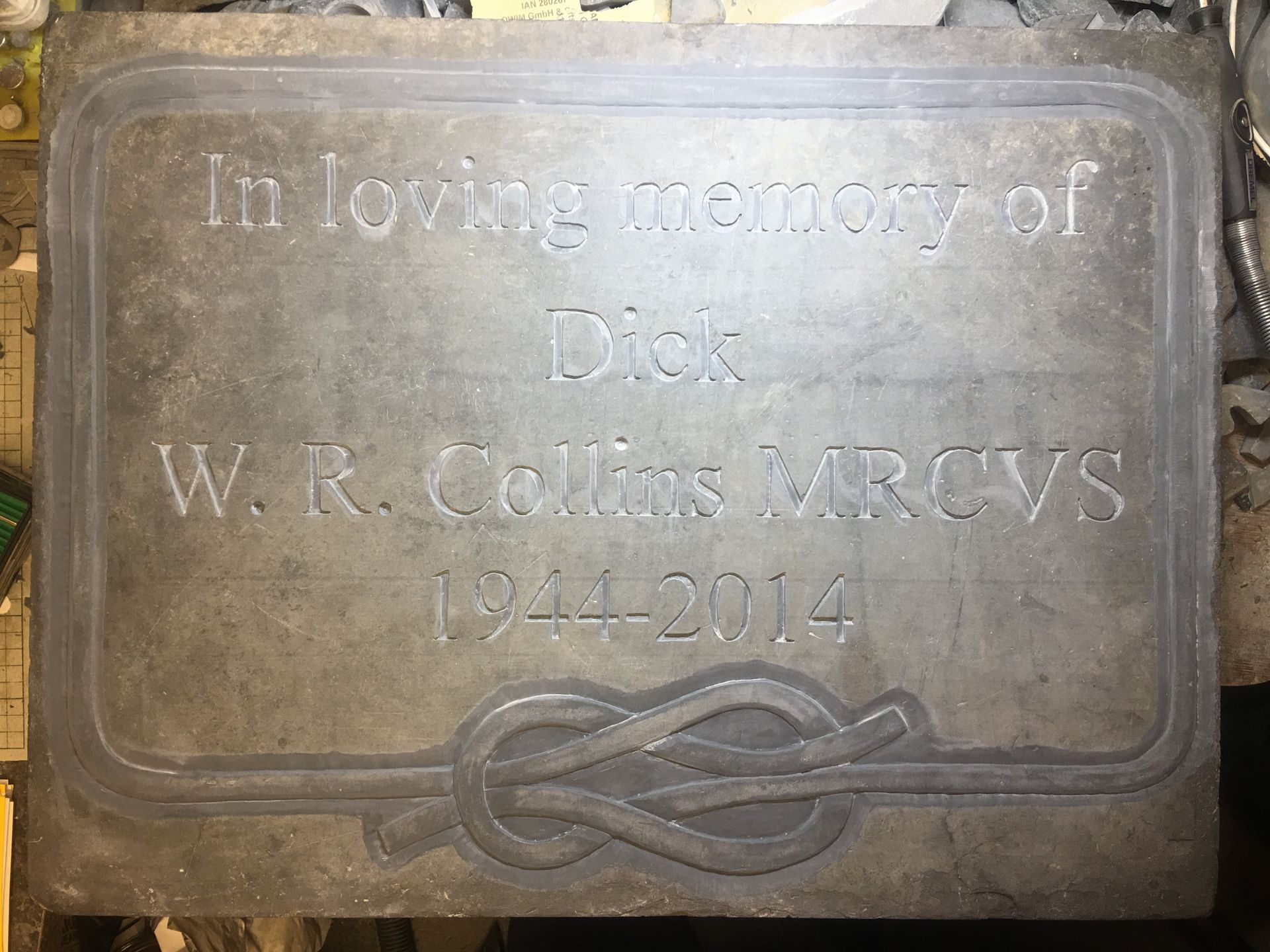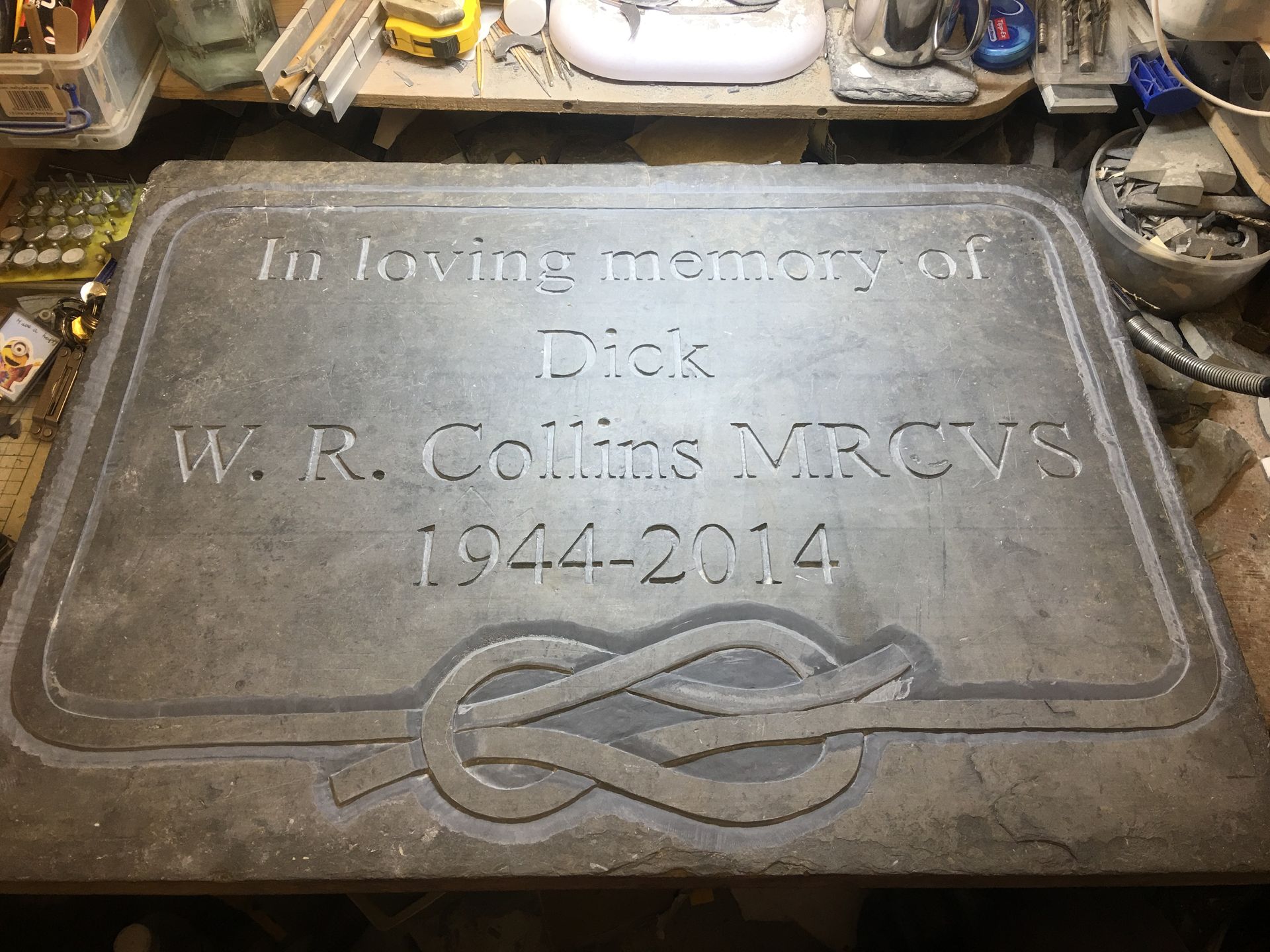 I was honoured to be asked to make this Memory Stone, using a large slate with a rope edging and Times New Roman for the font.