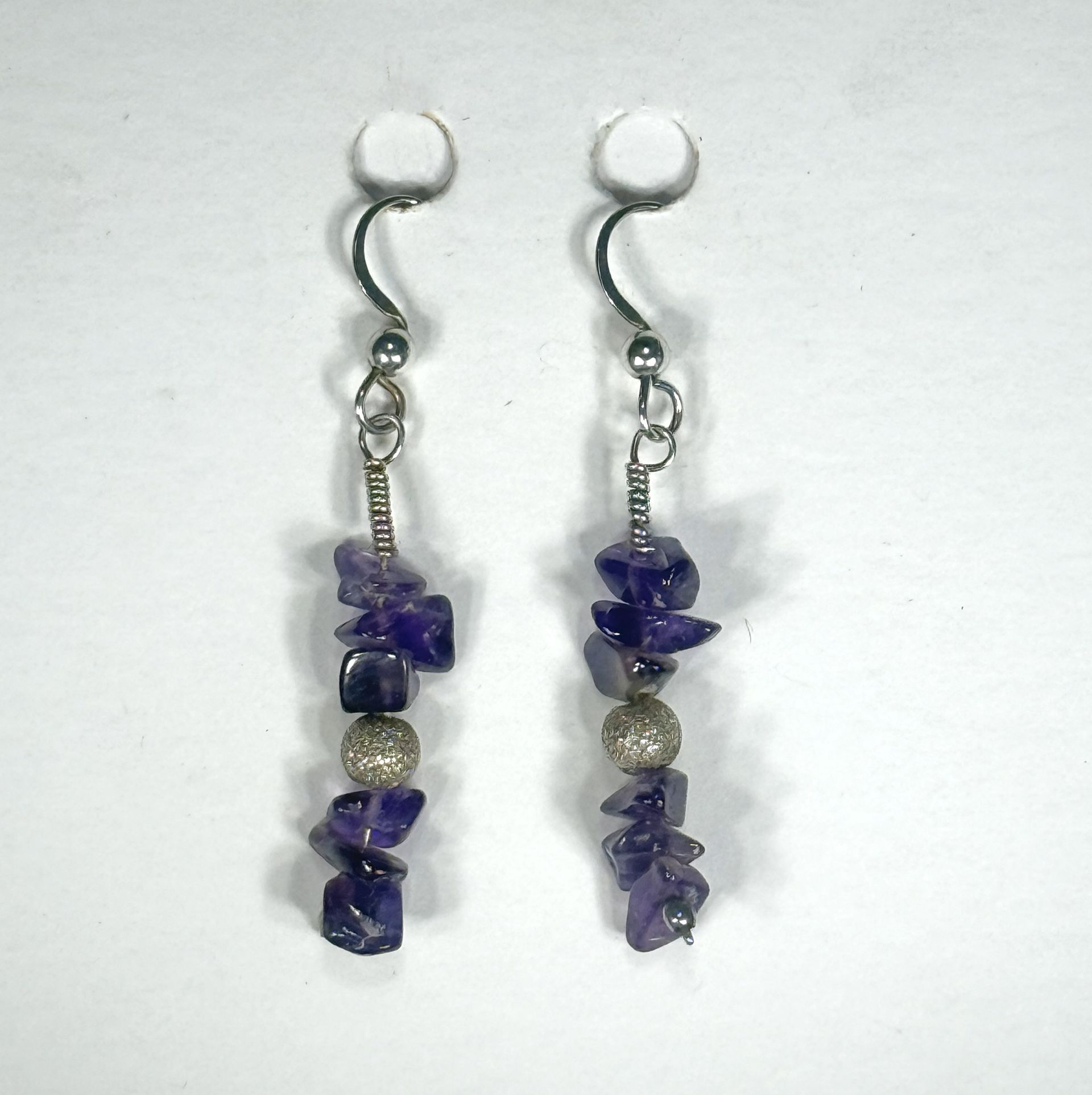 Amethyst Chip Bead and Silver Glitter Balls Earrings.