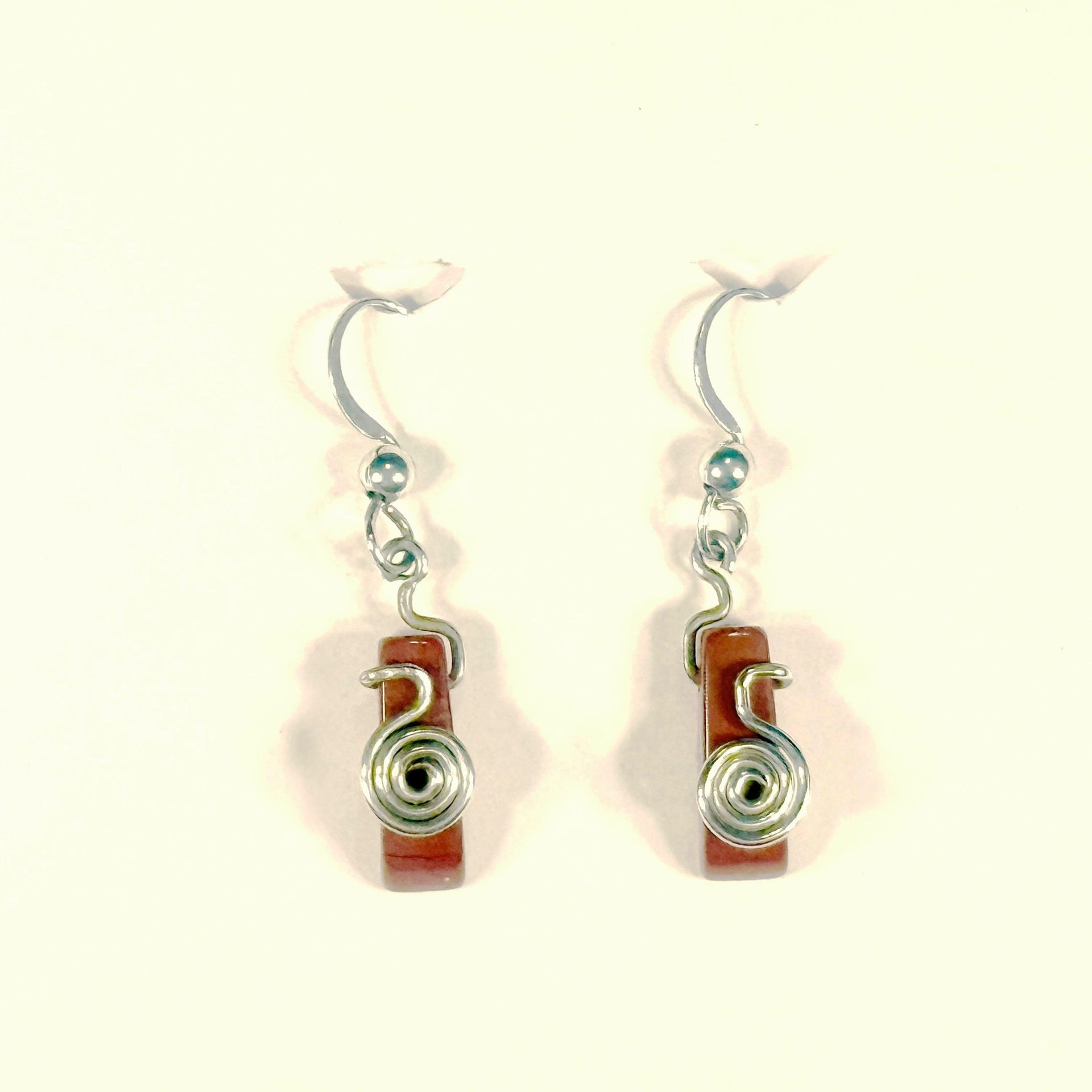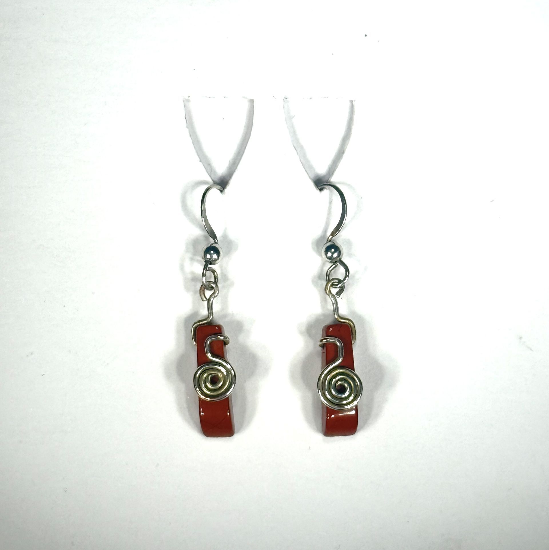 Red Jasper Tapered Gem Stone with silver wire spiral design.