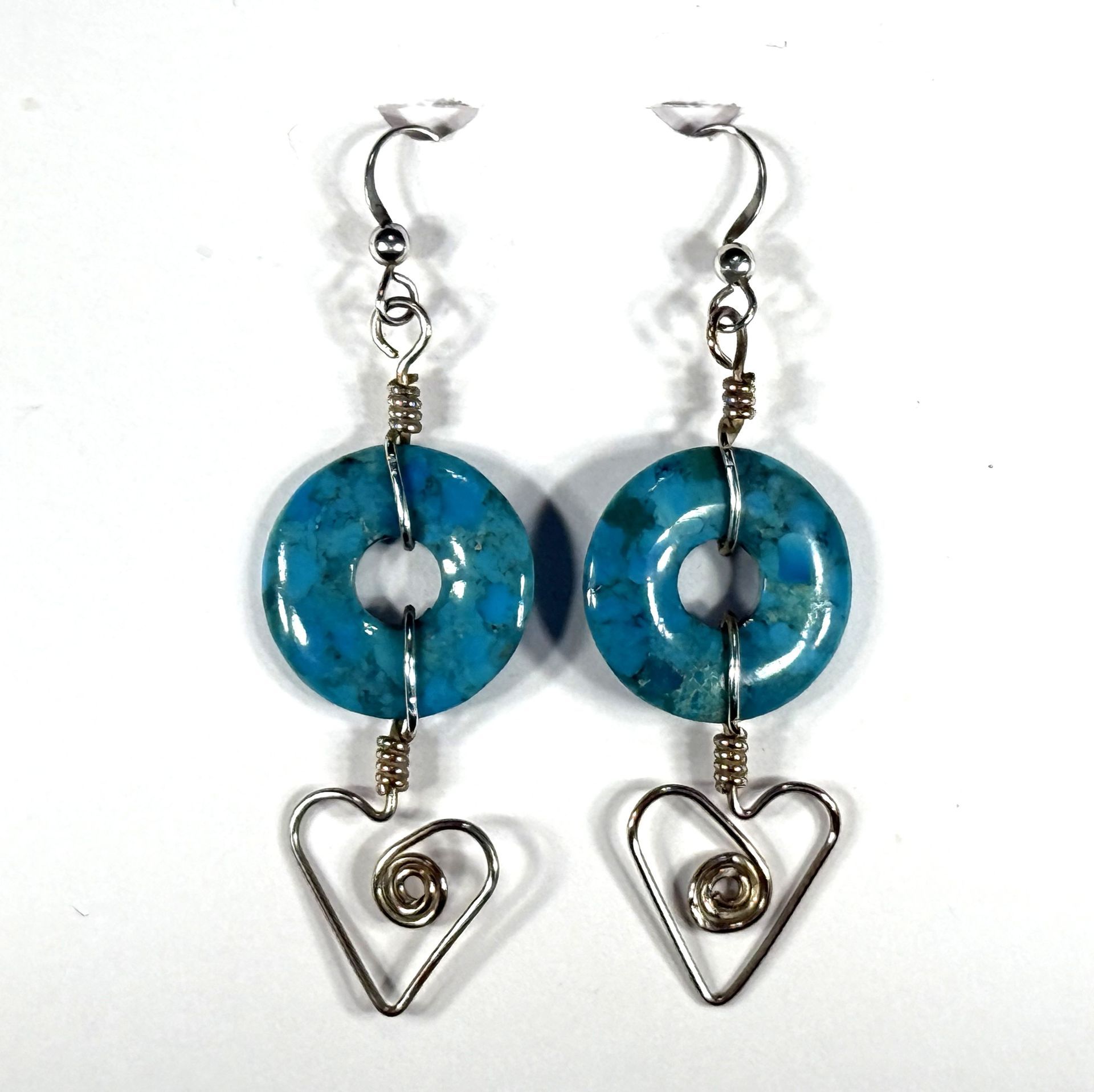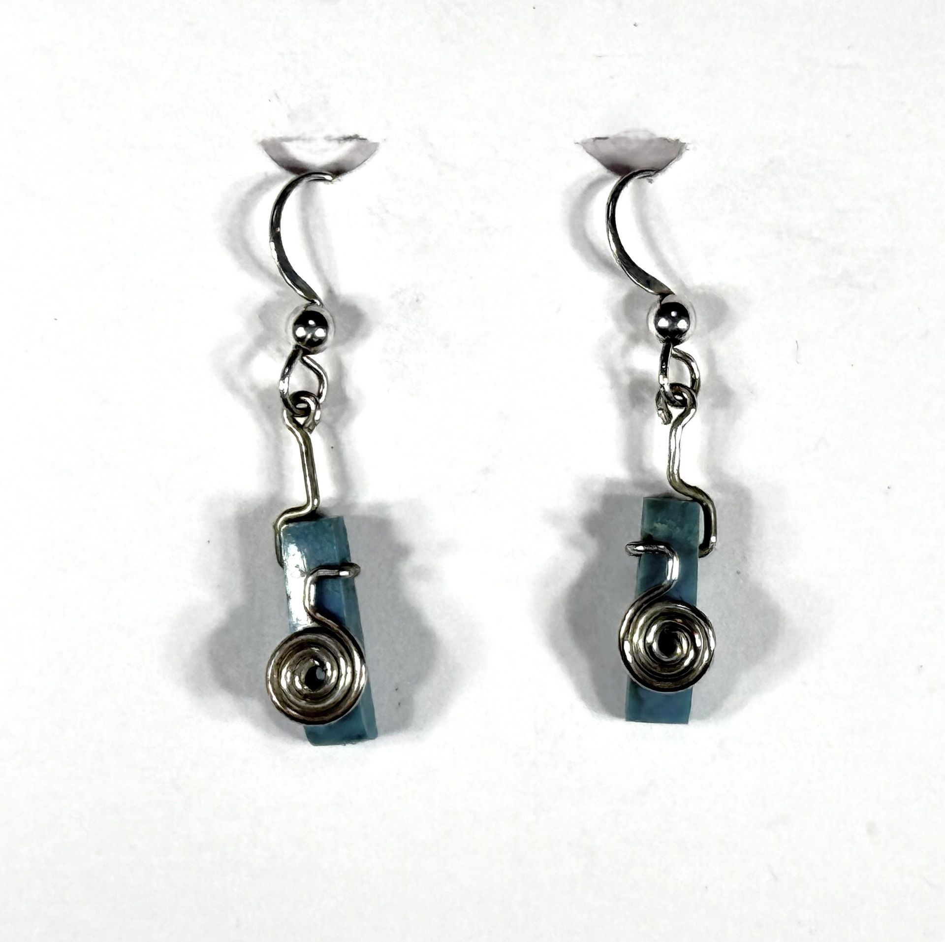 Turquoise Tapered Gem Stone with silver wire spiral design.