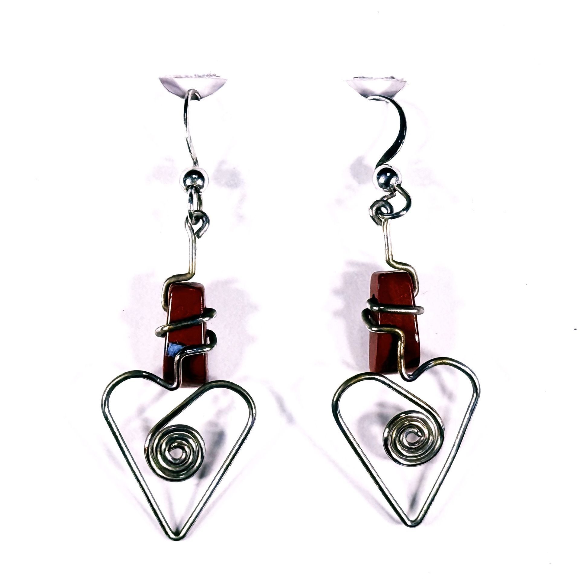 Red Jasper Tapered Gem Stone with silver wire heart design.