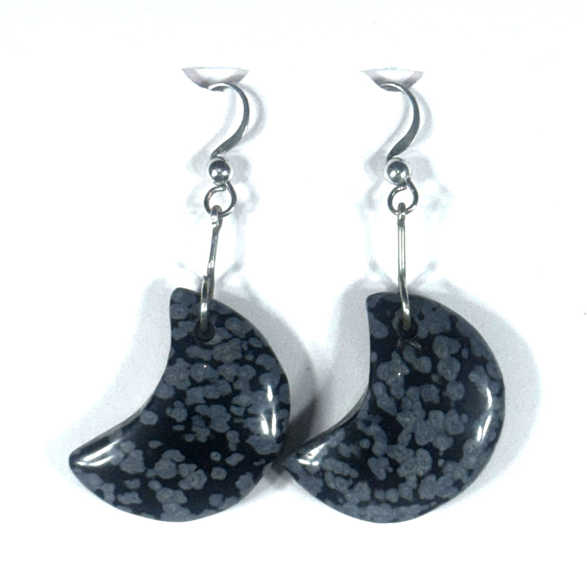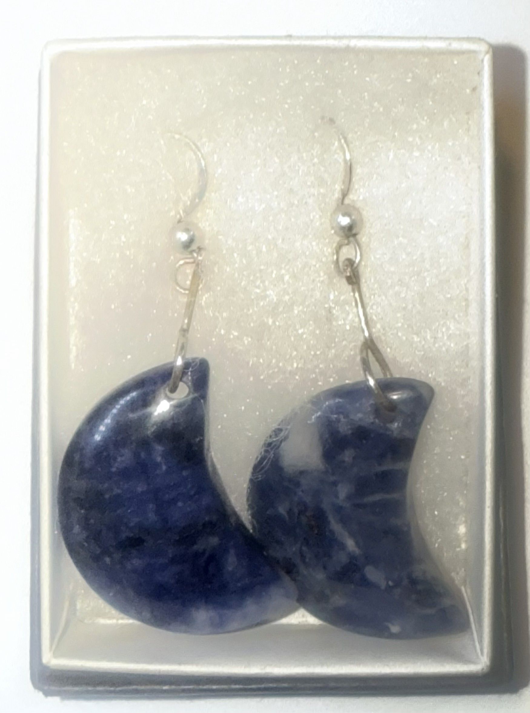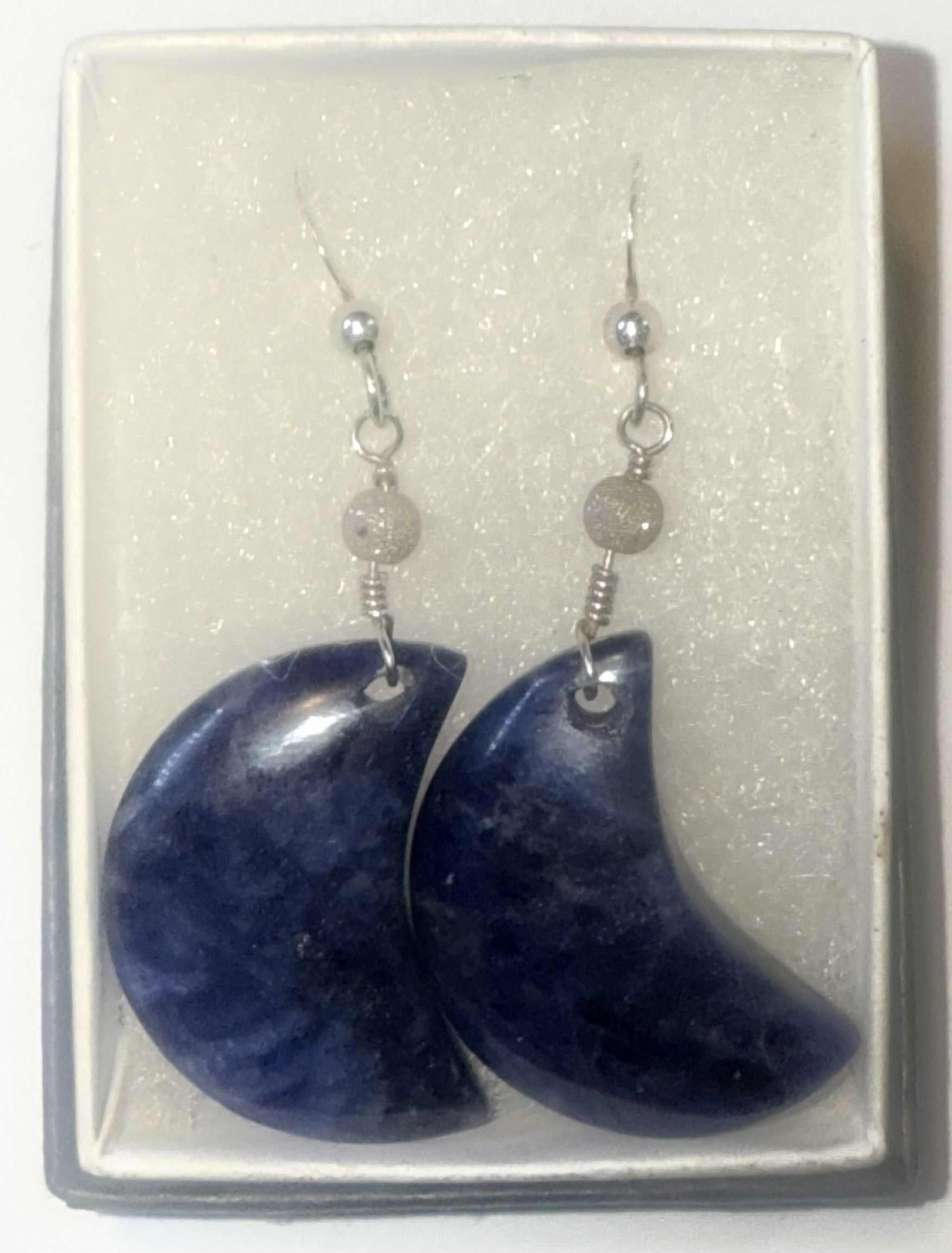 Blue Sodalite Moon Earrings with Sterling Silver Stardust Beads.