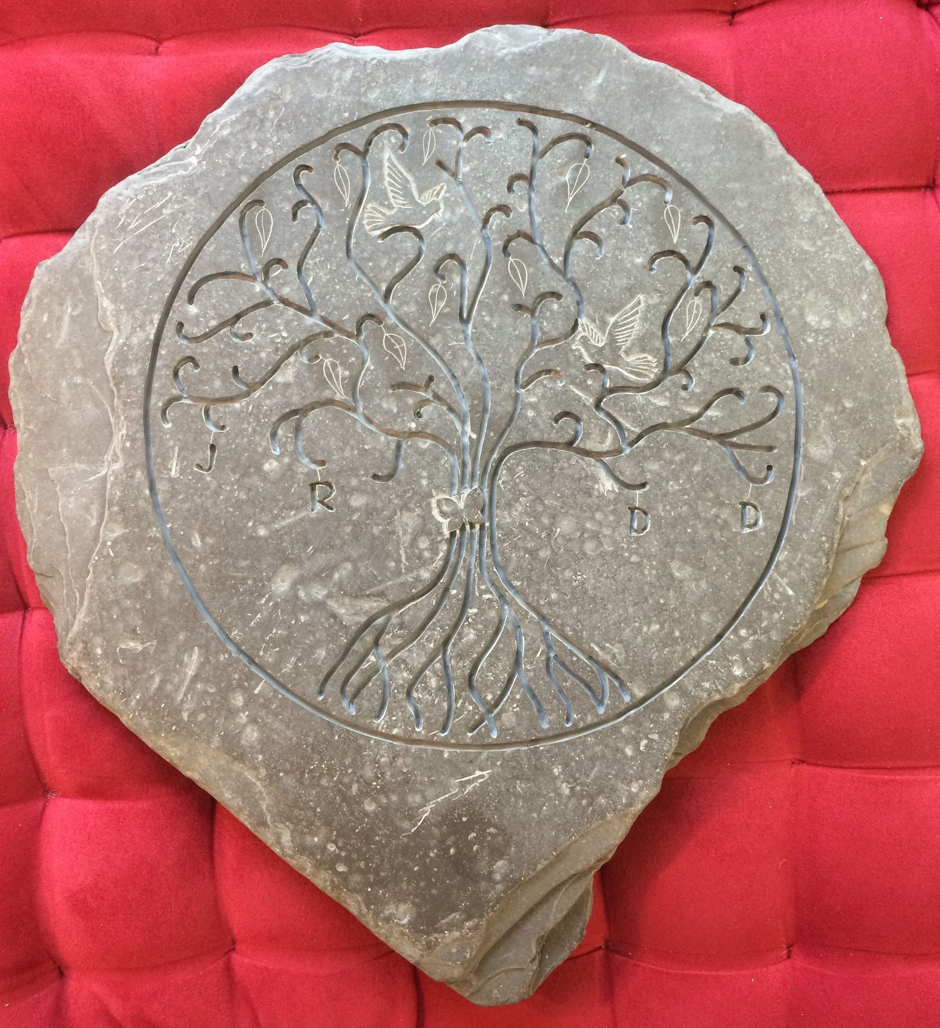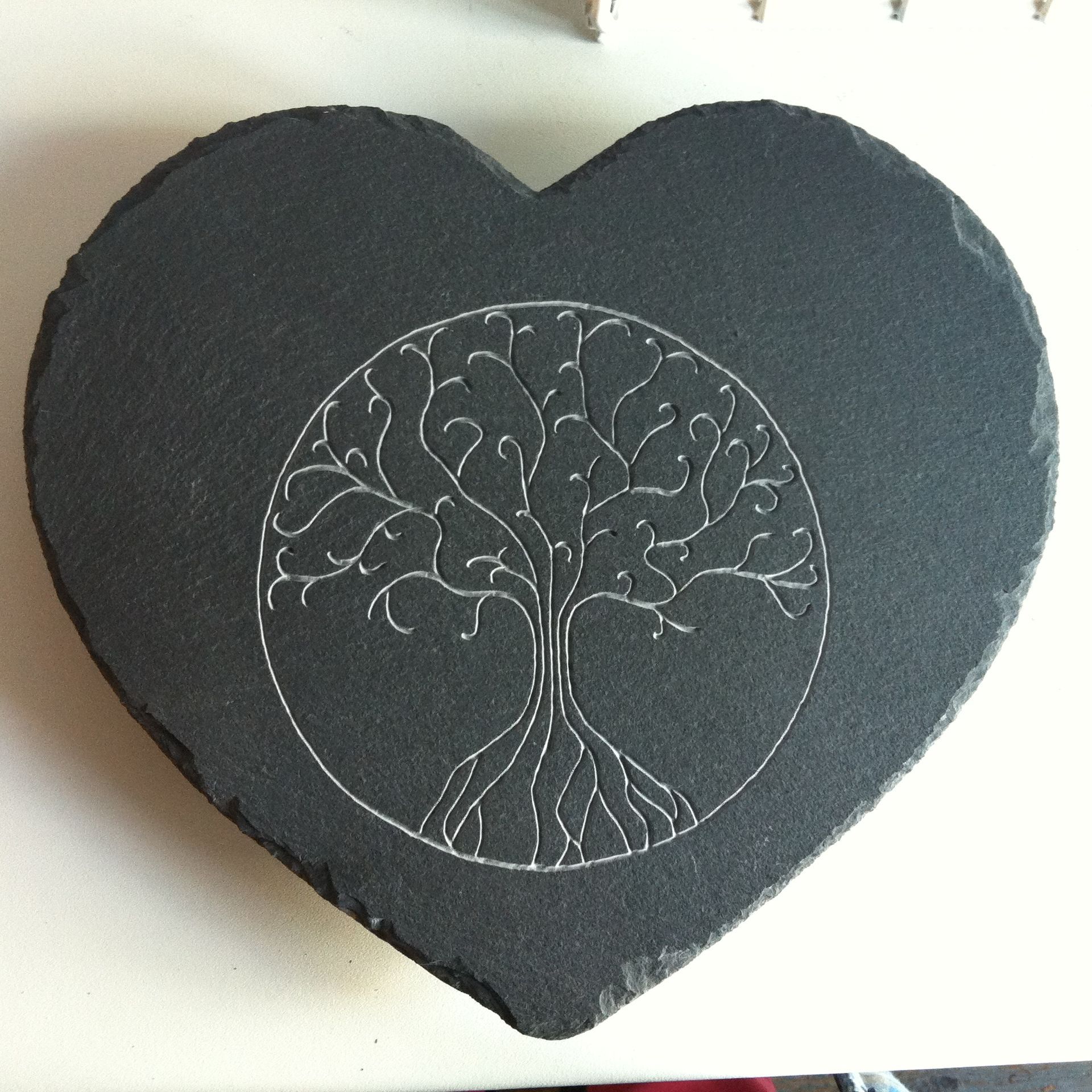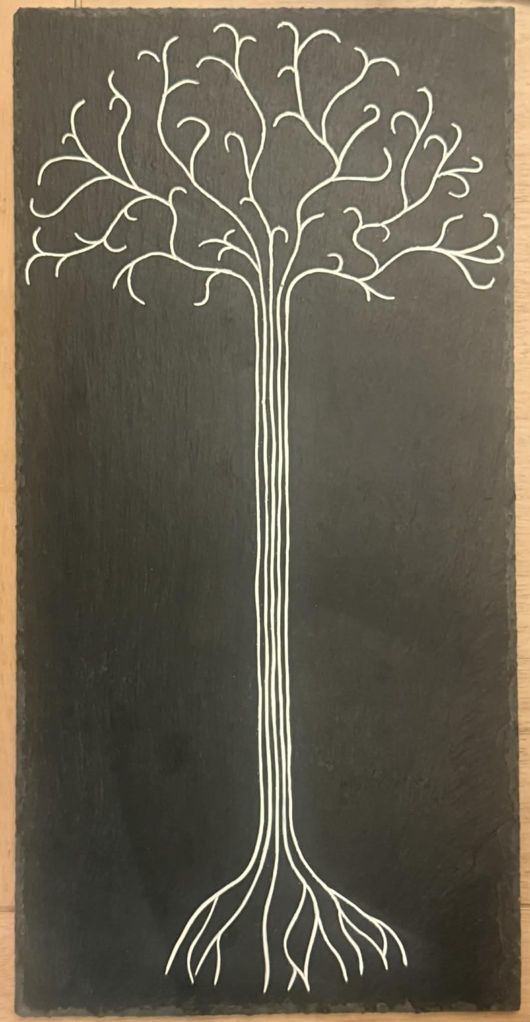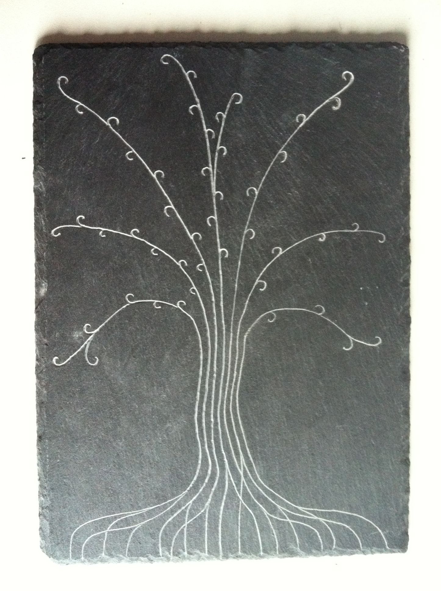 I've altered the design from a circle to a tall tree, to a tress on a rectangular slate.